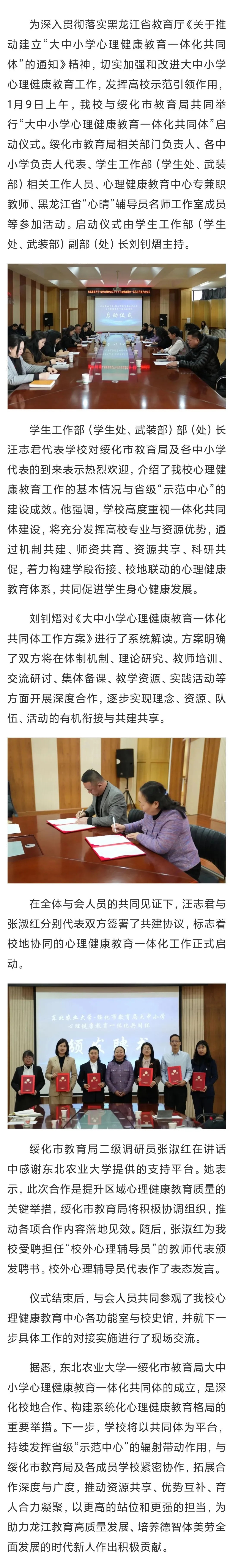 东北农业大学—绥化市教育局大中小学心理健康教育一体化共同体启动仪式在我校举行