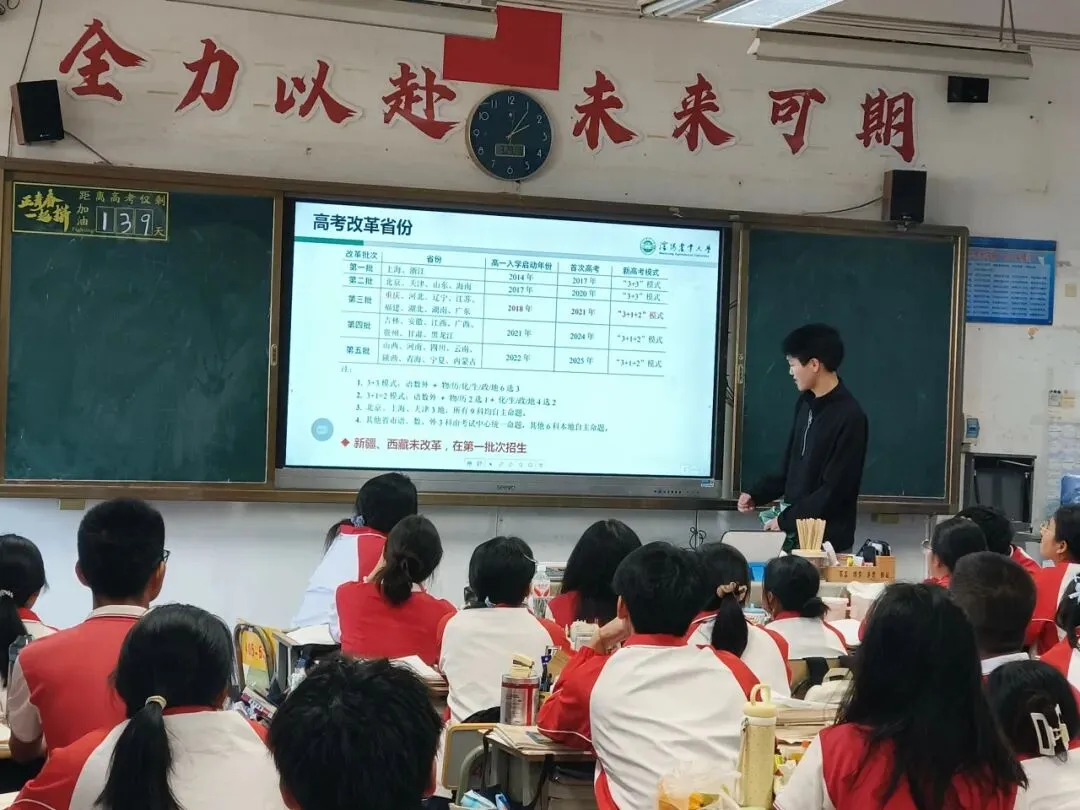 实践感悟: 重返母校,回望升学之路,感悟颇深。选对大学,就是为梦想选对赛道。在这里,有良师引路、益友同行,浓厚的学风催人奋进,丰富的资源助力成长。愿学弟学妹们坚定目标,冲刺高考,欢迎报考,在大学解锁无限可能,遇见更好的自己。