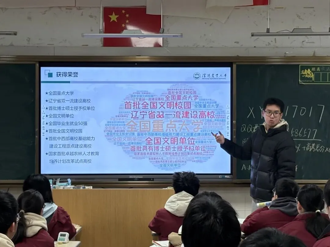 冬雪消融,暖意渐浓,本期我院25名宣讲大使奔赴省内外的25所高中母校。在熟悉的教室里,我们向学弟学妹讲述沈农的百年积淀与动科动医学院的专业优势,分享从高中到大学的成长蜕变。沈阳农业大学始终扎根农业、服务乡村,动科动医学院更是以“强农兴牧、守护生灵”为使命,在动物疫病防控、畜牧技术创新等领域成果丰硕。作为沈农人,我们愿将这份情怀与底气传递下去,让更多有志于投身农业的学弟学妹,在沈农找到属于自己的奋斗方向。