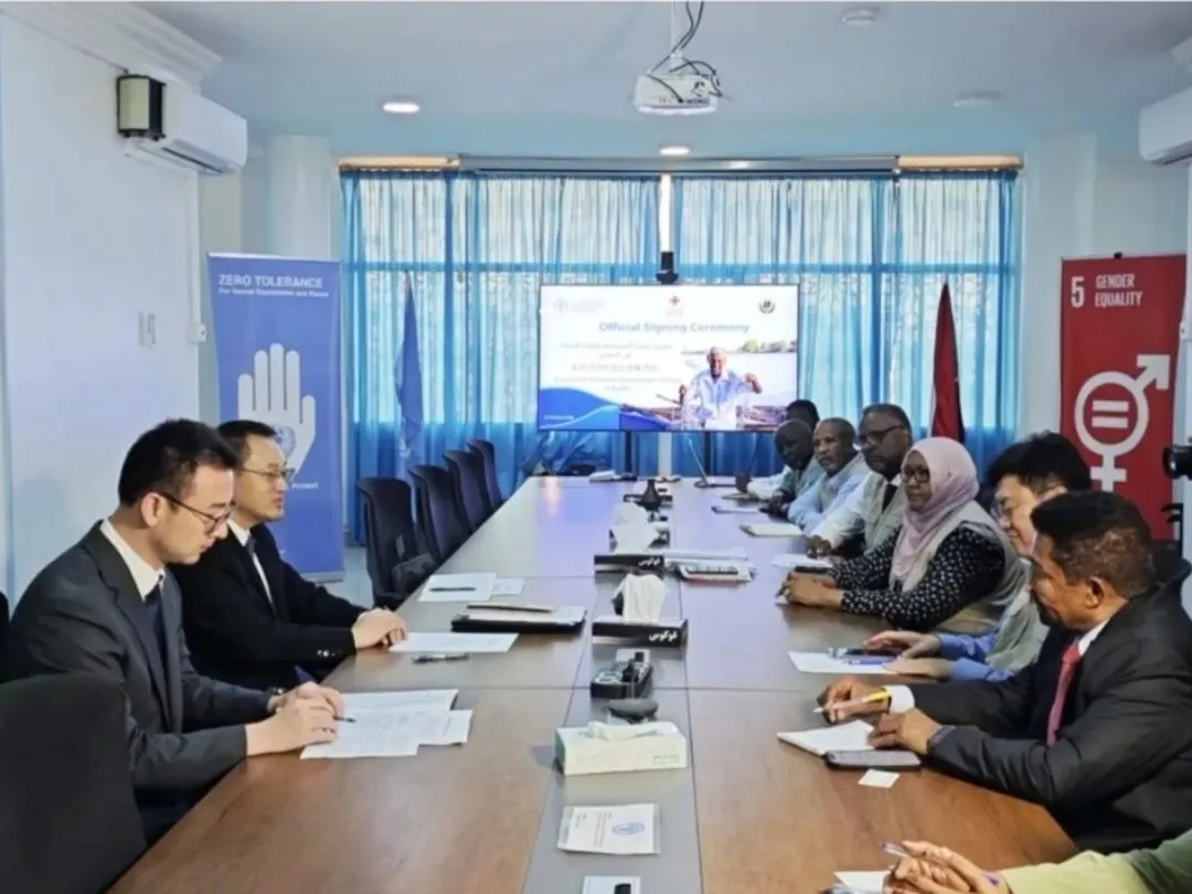 许代办见证苏丹动物和渔业资源部长曼苏里同联合国粮食及农业组织驻苏丹代表杨红杰签署项目文件,听取项目情况介绍。许代办致辞表示,中国一直是南南合作的倡导者和推动者,愿同苏丹政府和联合国粮农组织一道努力,确保项目成功实施。