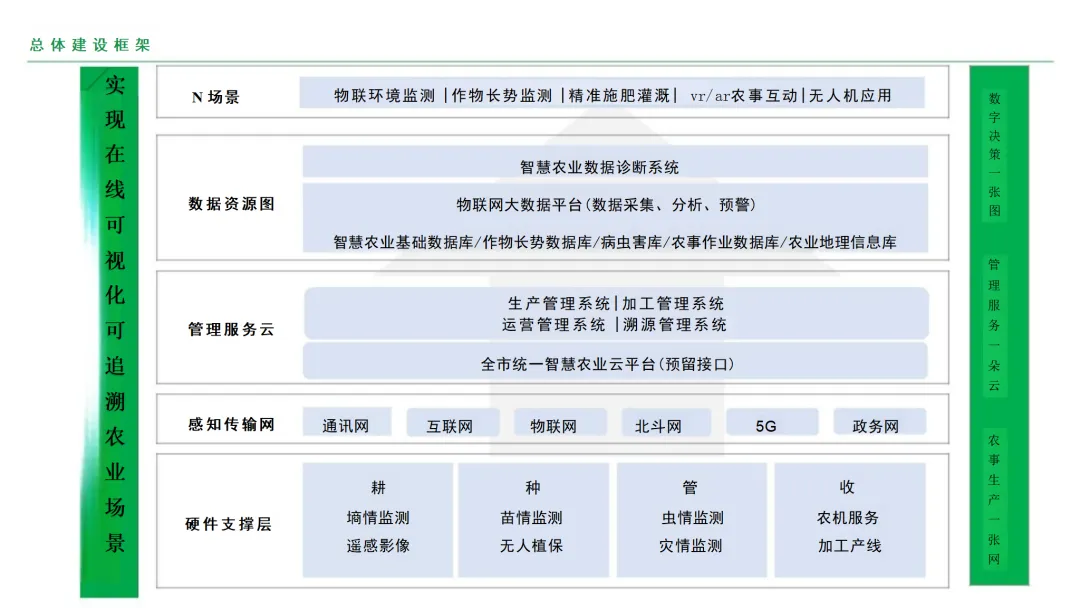 其核心内涵紧扣2026年中央一号文件导向,重点涵盖三个维度:一是生产环节智能化,聚焦文件“拓展无人机、物联网、机器人等应用场景”的要求,通过传感器、雷达等设备实时感知农作物生长环境、畜禽生长状态,借助智能农机、农用无人机等实现精准播种、水肥调控、病虫害防控等无人化作业,让无人机成为农民必备的“新农具”;二是管理环节数据化,呼应文件“强化农业科技创新体系整体效能”的部署,依托大数据平台整合农业资源、气象、市场等各类数据,打破“数据孤岛”,为生产决策提供科学依据,推动农业管理从“粗放式”向“精细化”转变;三是全产业链协同化,落实文件“把农业建成现代化大产业”的目标,推动产前、产中、产后各环节数据互联互通,实现良种培育、生产加工、流通销售的一体化协同发展,兼具资源节约、产出高效、环境友好、产品安全的鲜明特征,助力农业产业提质增效、农民稳定增收。