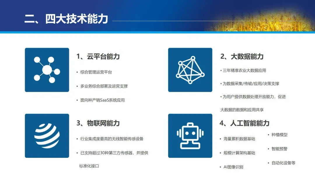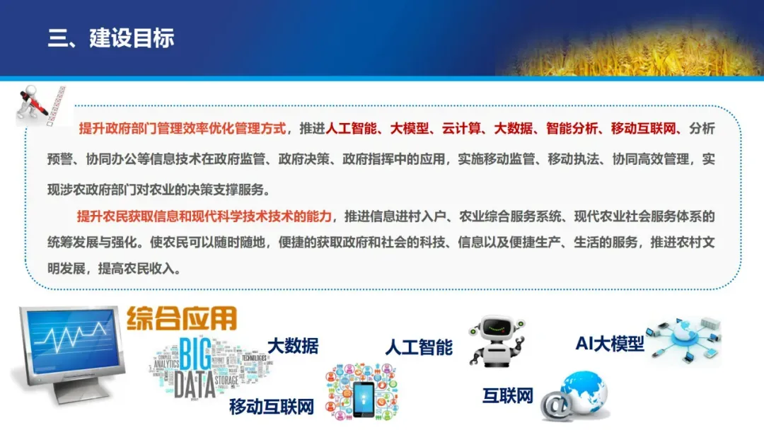 二是拓展应用场景,推动技术落地生根。文件明确提出促进人工智能与农业发展相结合,拓展无人机、物联网、机器人等应用场景,推动智慧农业从“盆景”走向“风景”,实现连片规模化发展。重点支持智慧农田、智能农机、精准饲喂等应用,推动数字化贯穿农业生产、加工、流通、品牌全链条,同时运用物联网、传感器等技术,加强农村污水、垃圾处理、土壤监测等领域的动态监管,助力生态宜居美丽乡村建设。