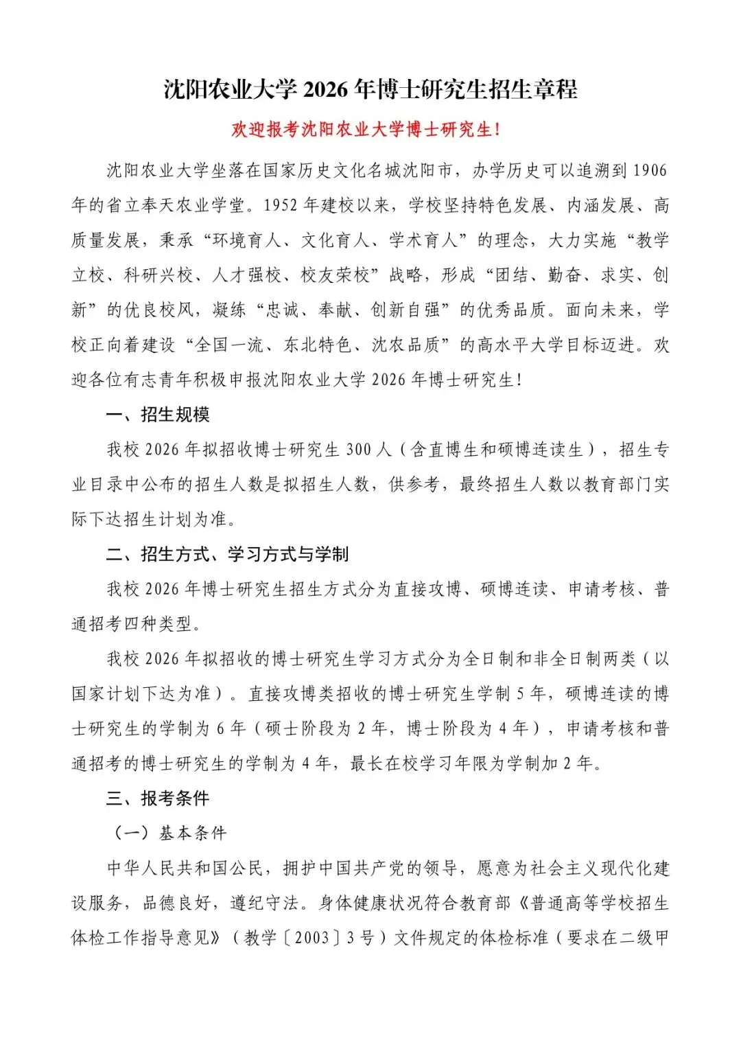 #博士申请#沈阳农业大学#26年博士招生#博士招生简章#博士申请助手