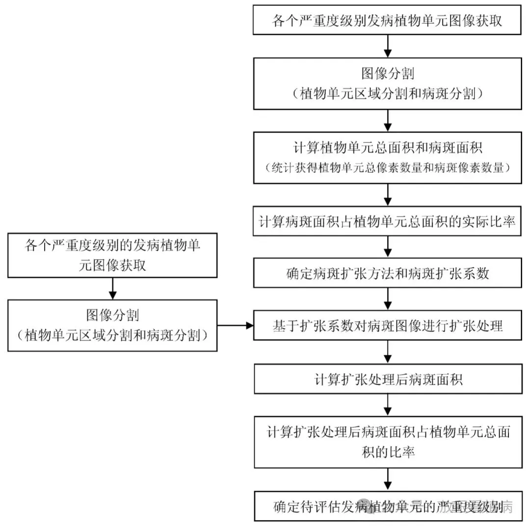 图1. 基于病斑扩张的植物病害严重度评估方法流程