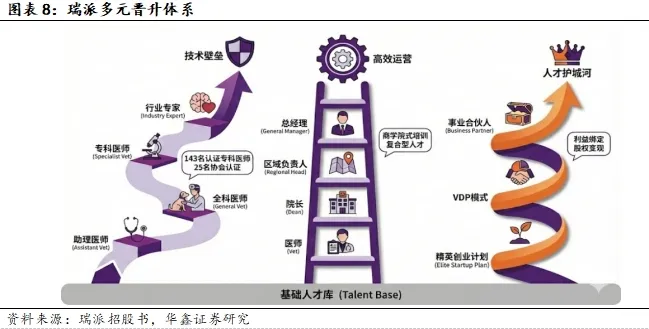 针对上述痛点,瑞派独创“控股(约60%)不独资”的VDP合伙人模式 ,通过“现金+集团股权”的双重锚定将核心兽医转化为共担风险的事业合伙人,根除代理人风险 。同时,公司建立校企直连人才库,与125所院校深度合作,年均吸纳约500名本科生,有效破解人才供给瓶颈与高成本难题。