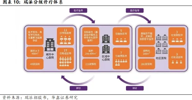 为了实现医疗资源的高效配置与广泛覆盖,瑞派构建了特色的“三级协同”医院网络体系: