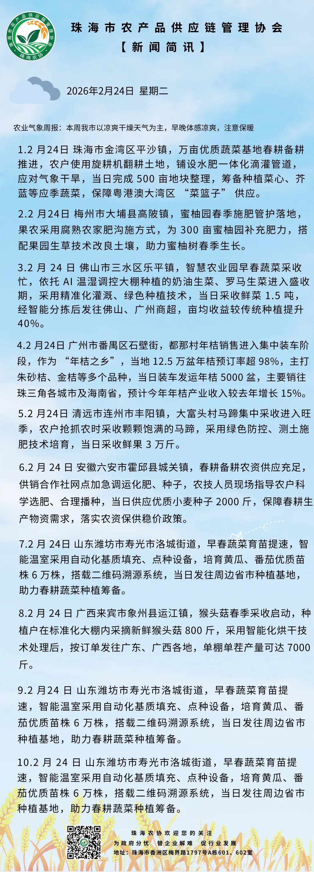 >2026年2月24日农业相关新闻简讯