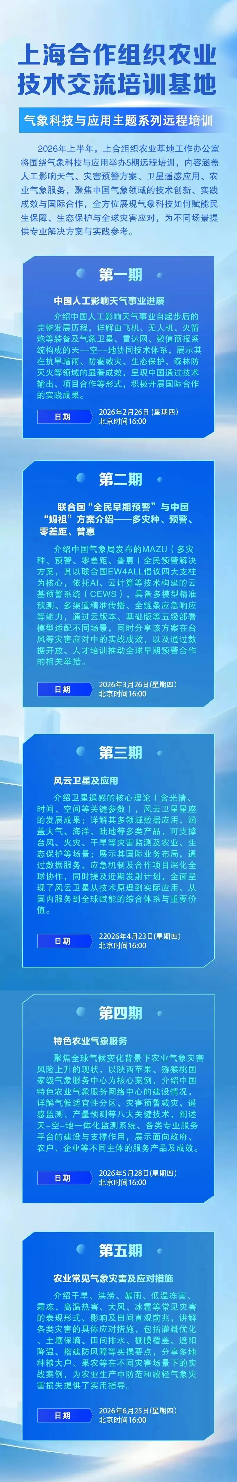 预告:上海合作组织农业技术交流培训基地气象科技与应用主题系列远程培训即将上线