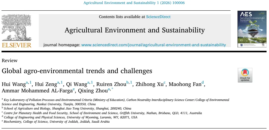 提出科学解决方案以促进农业环境可持续发展。
