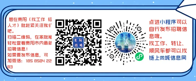 现在找工作的人很多、您的举手之劳不会损失什么、却能帮到他们找工作岗位要求:中专以上文化程度,20周岁以上至45周岁以下.1、有农药、植保、农学以及相关专业者或具备一定的市场开拓和客户维护能力者优先。2、认同公司理念,要求身体健康,能吃苦耐劳,上半年要求经常出差。岗位要求:初中以上文化程度,20周岁以上至45周岁以下,身体健康,无近视,无不良嗜好。岗位要求:男生(女生已满),35周岁以下,身体健康,勤苦耐劳,初中以上文化,执C照3年以上的熟练驾驶,熟悉贵阳市物流情况。注:联系时请说是在“贵阳链上同城信息网”看到的信息,若信息与实际不符,请向小编反馈:18585042283(微信同号)声明:本文为第三方广告信息,经第三方授权发布,其解释权归广告内容提供方所有。所有内容和图片由广告内容提供方提供,涉及版权、产品服务和质量等所有信息和一切法律责任由广告内容提供方负责,与本平台无关。温馨提示:按照人社部有关规定,用人单位招聘得以任何名义向应聘者收取押金、培训等费用,请谨慎选择,以免受骗上当。小编反复提醒各位找工作的求职人员,一定要远离“高佣金”“先垫付”‘’网络兼职‘’刷单点赞‘‘’等招聘信息。如在网络求职过程中招聘方要求下载APP软件,请大家注意切勿下载,以免发生资金损失!为给用人单位留下良好印象,请在工作时间内拨打电话。