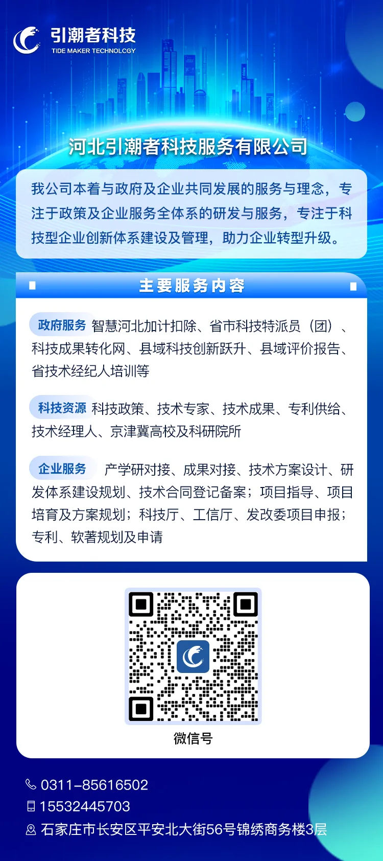 河北引潮者科技服务有限公司,以全链条服务体系助力创新型企业加速成长。在科小申报、高新认定、专精特新评定、研发费用加计扣除核准、校企技术需求对接、企业技术中心审定及科技专项申报等方面,均配备资深团队提供一对一精准服务。