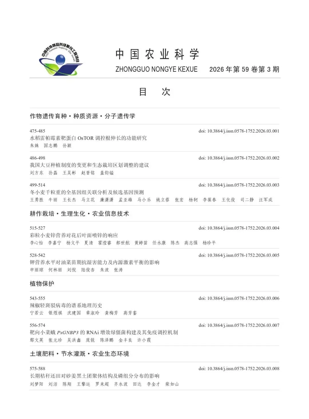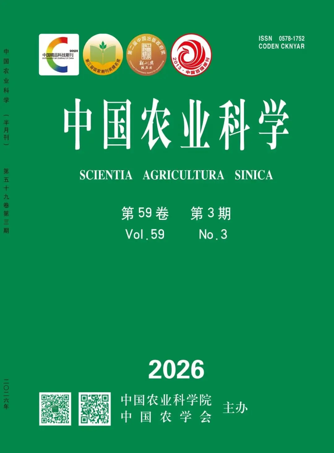 《中国农业科学》创刊于1960年,由中华人民共和国农业农村部主管、中国农业科学院主办,是农业科学领域的权威学术期刊,现为半月刊。该刊始终坚持以理论创新引领农业科技发展,在作物遗传育种、耕作栽培、植物保护、土壤肥料研究领域具有重要学术地位和广泛社会影响力。