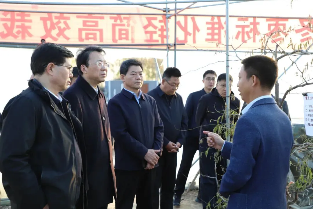 最后,调研组一行来到先进农业技术创新成果展示区,赵福江书记从园区土地规划、产业布局和项目实施等方面,系统介绍园区主责主业开展情况。来到冬枣轻简高效栽培技术试验大棚,项目负责人从冬枣起源、栽培技术创新过程、成果推广等方面,详细介绍了冬枣篱壁式栽培技术。冷畅俭充分肯定园区冬枣栽培技术和枣业发展。