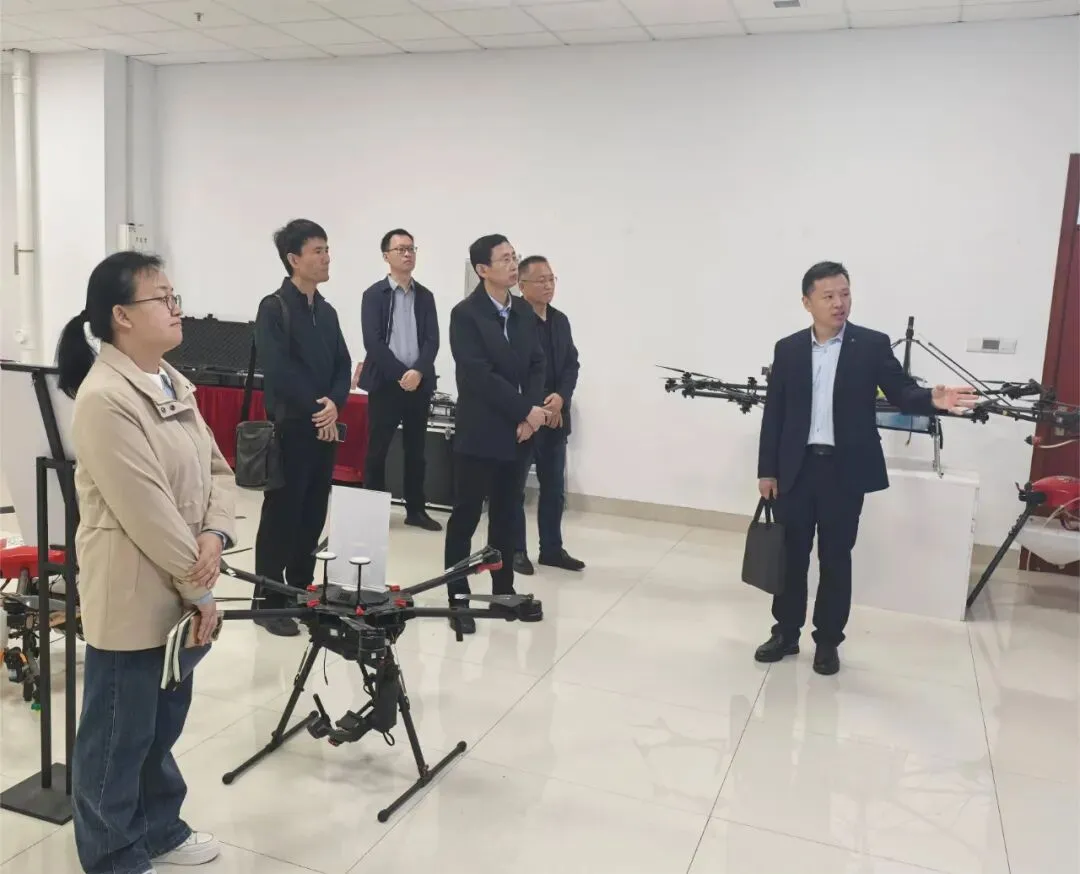 调研组一行首先参观了山东理工大学生态无人农场研究院。该研究院以兰玉彬院士团队为核心,以打造国际知名的无人化作业和智慧农业系统集成示范推广基地为目标,致力于推动精准农业航空应用技术在生态无人农场的落地实施应用,以及人工智能、5G通信、无人驾驶等技术在农业工程学科交叉和融合创新。在王国宾副教授的引领下,调研组详细了解了生态无人农场的理念、团队建设、基地建设以及研究成果。