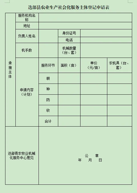 (一)申请表:《农业生产社会化服务项目托管服务组织申报表》(见附件)。