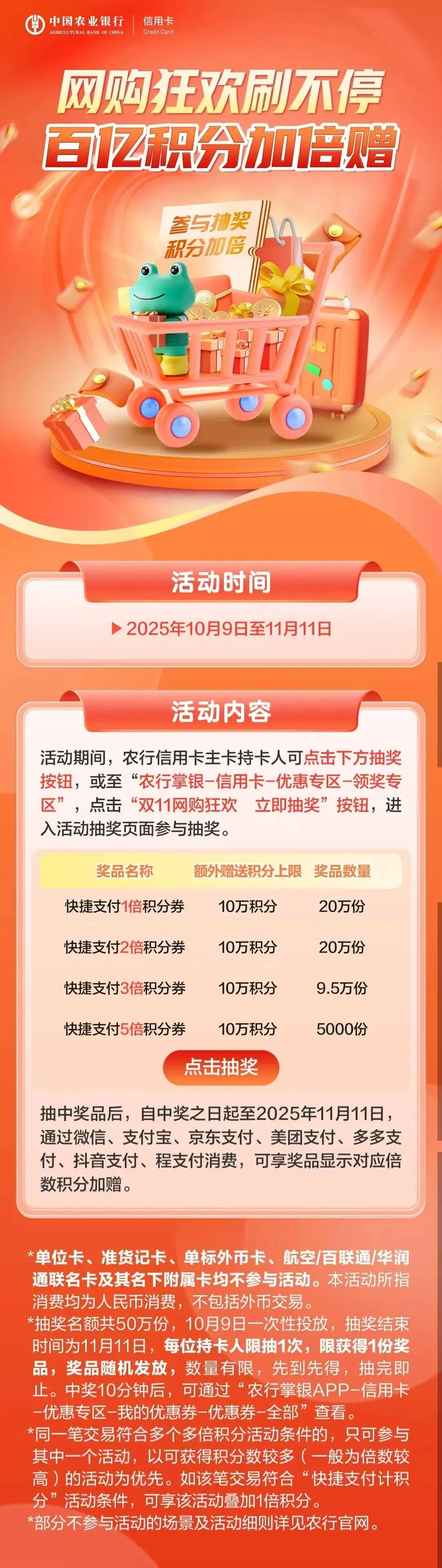 2026年2月农行快捷支付月月刷,立减金全民可参与
