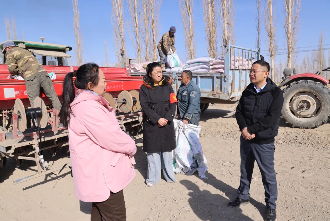 丁磊先后走进一连小麦春播地块、四连设施大棚育苗基地,与连队“两委”、种植户面对面交流,仔细询问小麦品种选择、整地备播等情况,实地察看土壤墒情、播种进度,深入了解春播技术推广应用、农资储备保障等相关工作落实细节。针对当前小麦春播关键节点,丁磊强调,要严格按照春小麦生产技术要求,科学把控播种时间、播种深度和播量,推广精量播种、种子包衣等实用技术,做好播后镇压、保墒等后续管理,全力确保一播全苗、苗匀苗壮,牢牢守住粮食安全底线。