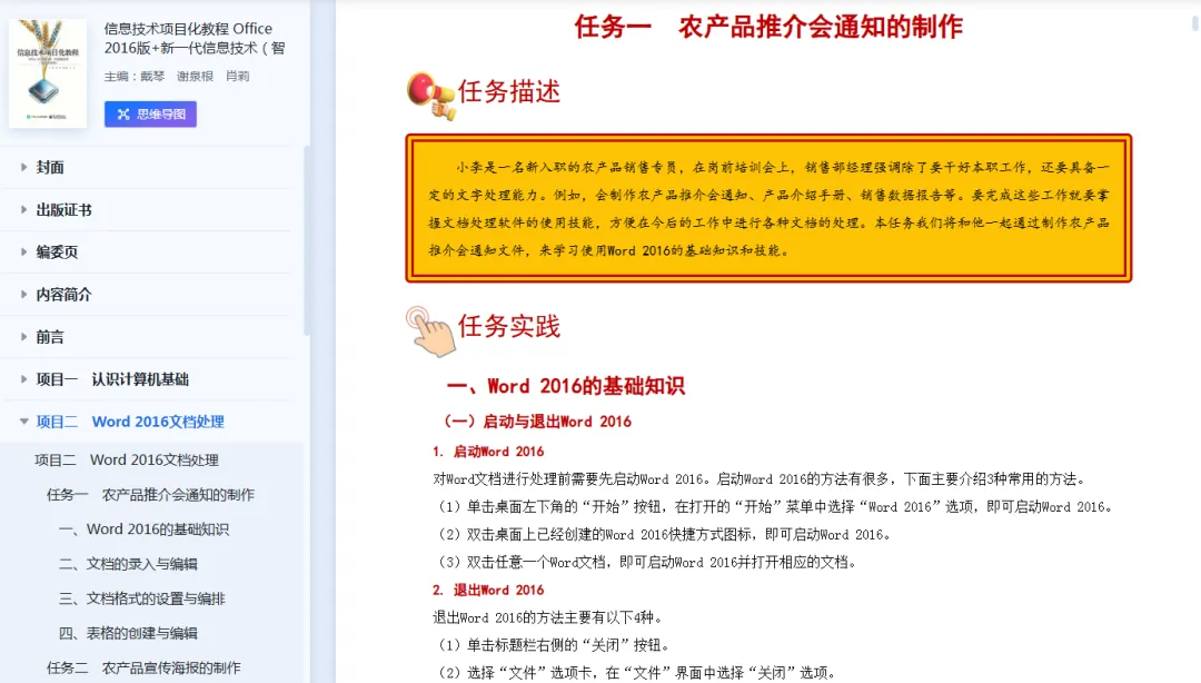 复制以下链接,查看《信息技术项目化教程 Office 2016版+新一代信息技术》(智慧农业类)数字教材