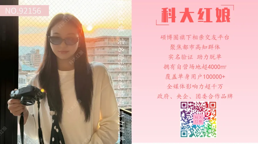 【科大红娘】经过10年的口碑积累和发展,汇聚10w+青年,本硕博学历占比高达98%。会员大多毕业于海外名校、国内C9、985、211、双一流高校,覆盖政府机关、事业单位、高校、科研院所、国企央企、金融行业、上市公司、互联网大厂等行业。