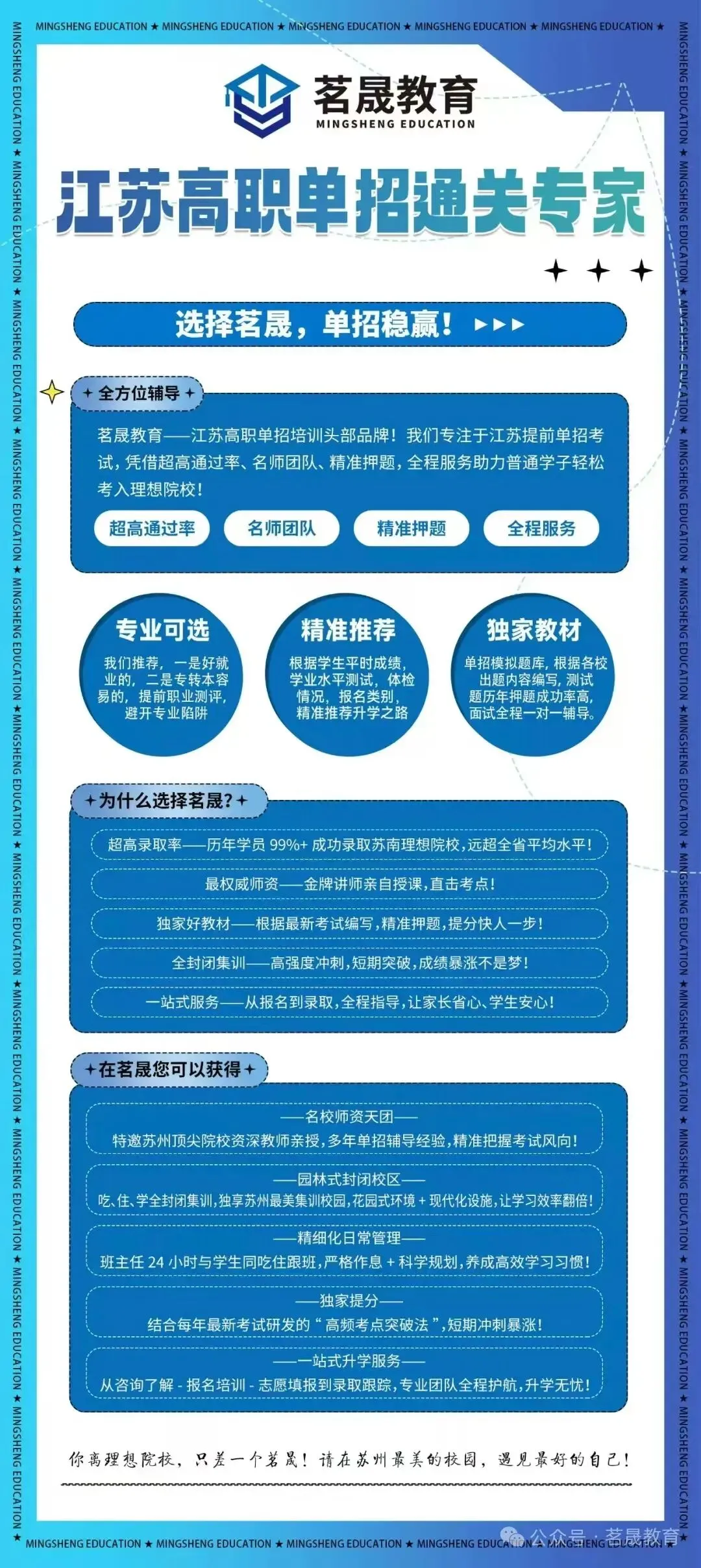 ②报名网址及志愿填报:江苏省教育考试院考生服务平台(gk.jseea.cn)。每位考生可填报1所高职院校,可向填报院校申请6个专业并明确专业调剂意向。