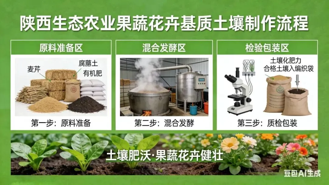 【原料采集】→【预处理】→【分层堆制】→【发酵腐熟】→【配方混合】→【成品使用/存放】 ↓ ↓ ↓ ↓ ↓ ↓ 陕西就地取材暴晒/切碎/腐熟 按层铺料喷水 55-65℃翻堆 按作物选配方 装盆/育苗/大田 |
