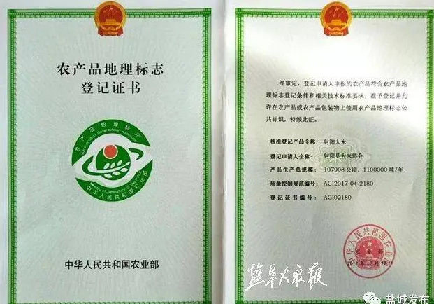 重溯品牌形象。射阳大米是国家地理标志农产品,地理标志集体商标,在中国优农协会的指导支持下,获得2016年、2017年、2018年中国国际农产品交易会金奖,中国百强农产品百强区域公用品牌,十五届、十六届、十七届、十八届、十九届中国国际粮油交易会金奖,中国十佳粮食地理标志品牌,被中国优农协会授予中国消费者最喜爱的100个农产品区域公用品牌,2016年、2018年、2020年中国大米十大区域公用品牌,农业品牌100强,2018年、2020年中国十大好吃米饭,2020年中国农业十大地理标志产品,射阳县沈氏农副产品加工厂,射阳县圣阳米业公司也被授予核心优质稻米基地、射阳县农业农村局局长乔干群被表彰为全国农业十大新闻人物等等,在更广的范围内扩大了射阳大米的品牌影响,在更深的领域中丰富了射阳大米品牌内涵,在更高的层次里提升了射阳大米品牌的价值,促进射阳大米由内生型自主发展向外向型开拓创新转变,由大路货同质化竞争向更具优势、更有附加值效转型,由江苏农产品十强到香飘全国的跨越。形成中国优质好吃大米“北有五常,南有射阳”的现状。射阳也因此被授予中国优质粳稻之乡,连续13年获得全国粮食生产先进县。目前,射阳大米销售全国10多个省、市,每年供给上海市民达50多万吨,占上海市场20%以上,年糕、粽子产品走出国门,销往日、韩等国家。