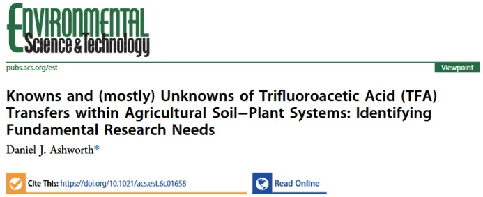 基于这些有限条件下的研究,TFA在植物中的累积与转运能力似乎显著强于长链PFAS,这对农业环境中的人类暴露风险构成了重要关切。正如Arp等人指出,TFA在全球范围内的广泛存在且浓度持续上升,加上其对人类健康影响的确定性,预示着随着相关研究的深入,未来几年内很可能出台新的TFA健康指导限值。为科学制定这些保护人类健康的限值标准,当前亟需开展更多实证研究,涵盖多种农作物、土壤类型及环境条件,以精准量化农业系统通过“土壤-作物-人类”这一关键传递链对人类TFA暴露的贡献程度。通过实证获取的TFA植物根系吸收与根-茎转运参数,将成为归趋与迁移模型的重要输入数据,进而帮助全球监管机构评估TFA风险并制定健康保护阈值。