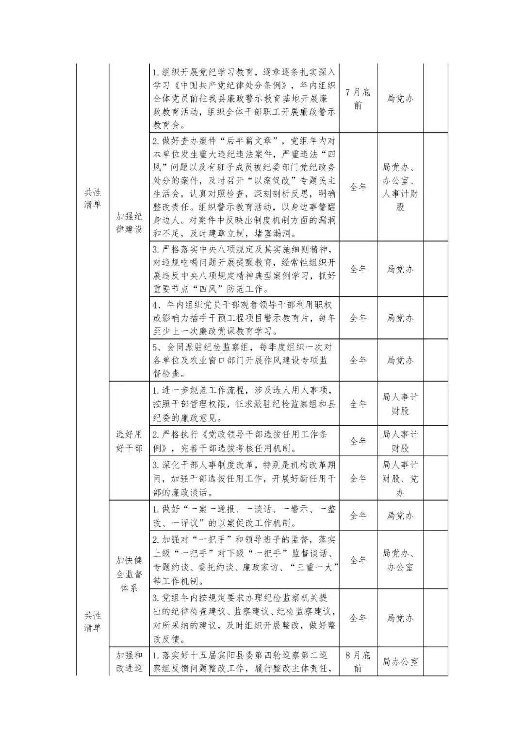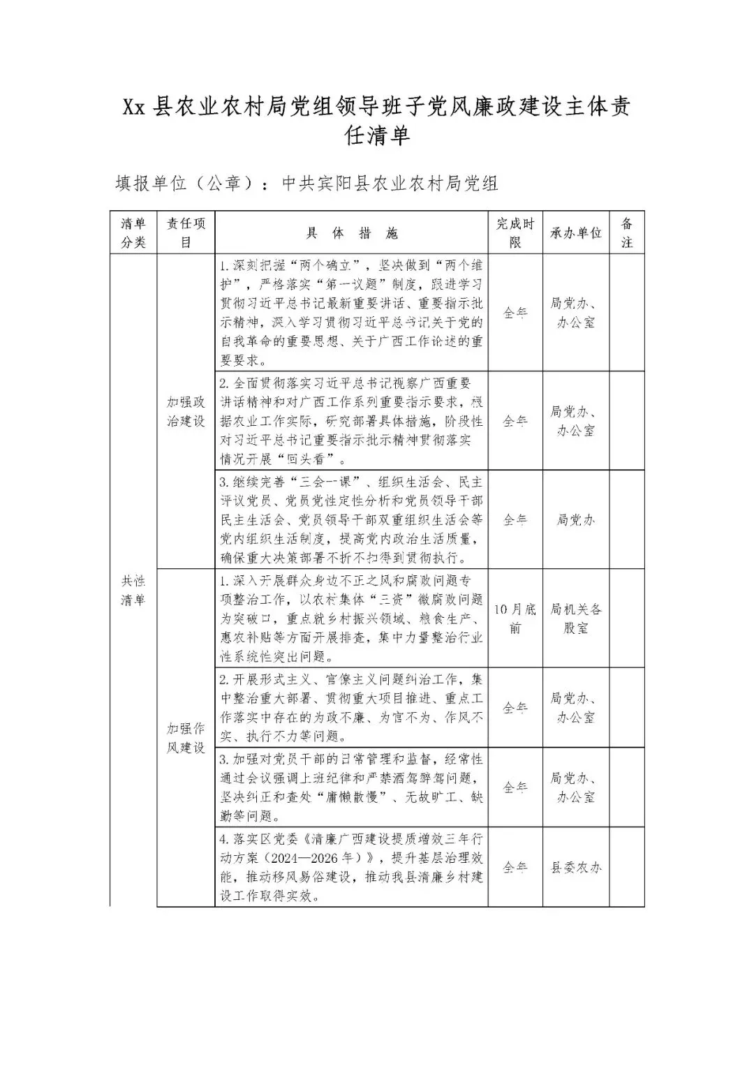 Xx县农业农村局党组领导班子党风廉政建设主体责任清单
