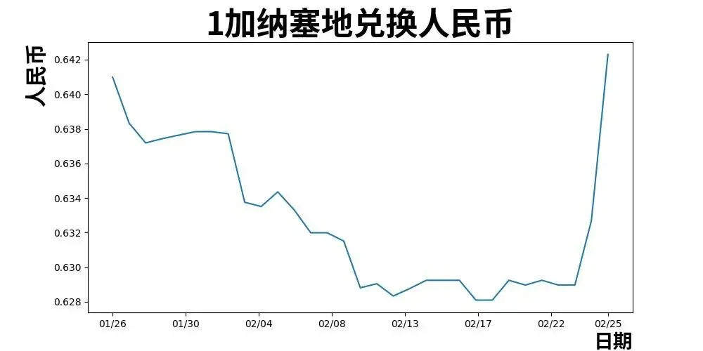 1 加纳塞地 = 0.64 人民币
