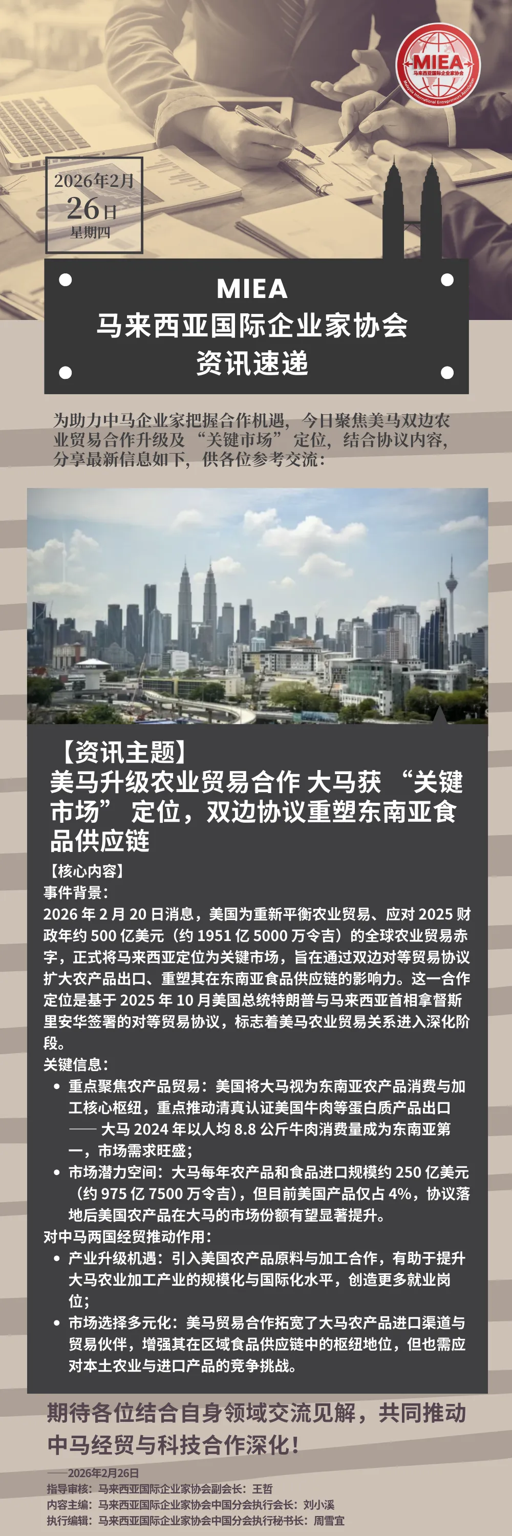 >美马升级农业贸易合作 大马获 “关键市场” 定位,双边协议重塑东南亚食品供应链