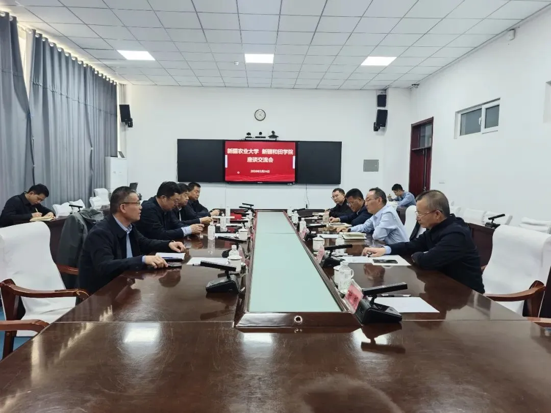 郑文新介绍了新疆农业大学在专业建设、农业科技创新、社会服务、产学研融合等方面的工作成效与经验做法。他表示,新疆农业大学与新疆和田学院在服务新疆乡村振兴、农业现代化建设中肩负共同使命,愿两校进一步加强对接协作,共同提升办学水平与育人质量。