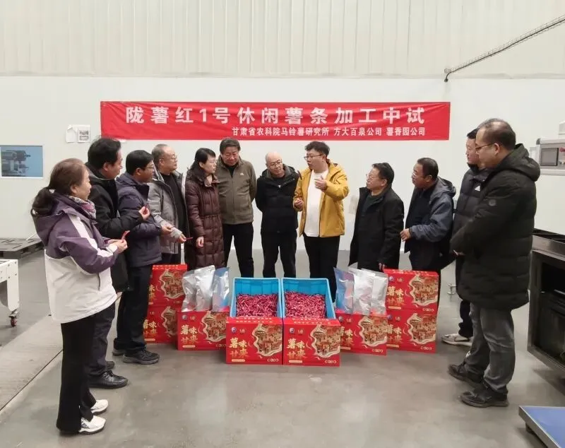 近日,由省农科院马铃薯研究所牵头,联合甘肃方大百泉农业科技有限公司、甘肃薯香园农业科技有限公司共同开展的“陇薯红1号功能性休闲薯条加工中试”项目在定西正式启动。这标志着院企协同创新在科技赋能寒旱农业方面迈出了新的一步,也为地方特色农业的产业化发展提供了有力支撑。活动邀请到国家马铃薯产业技术体系专家团队,以及定西市马铃薯产业发展办公室、定西市农业科学院马铃薯研究所等单位负责人参加。