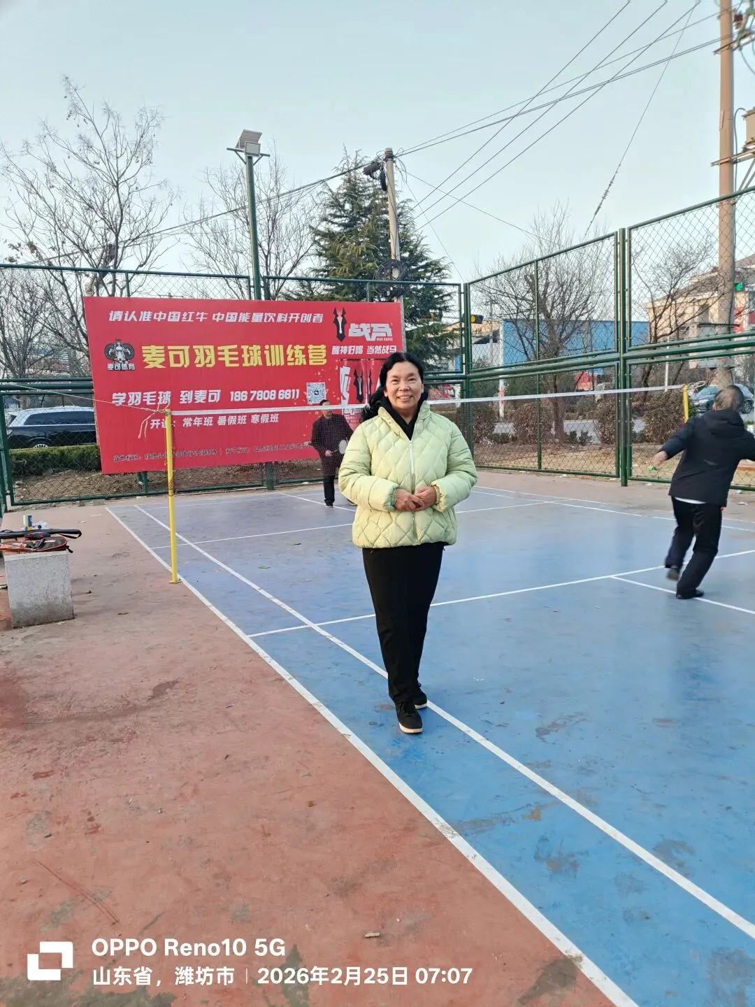 交通局退休的周大哥也加入我们。2020年,他打羽毛球很厉害。那时一群人天天早上在富盈小广场打得火热。