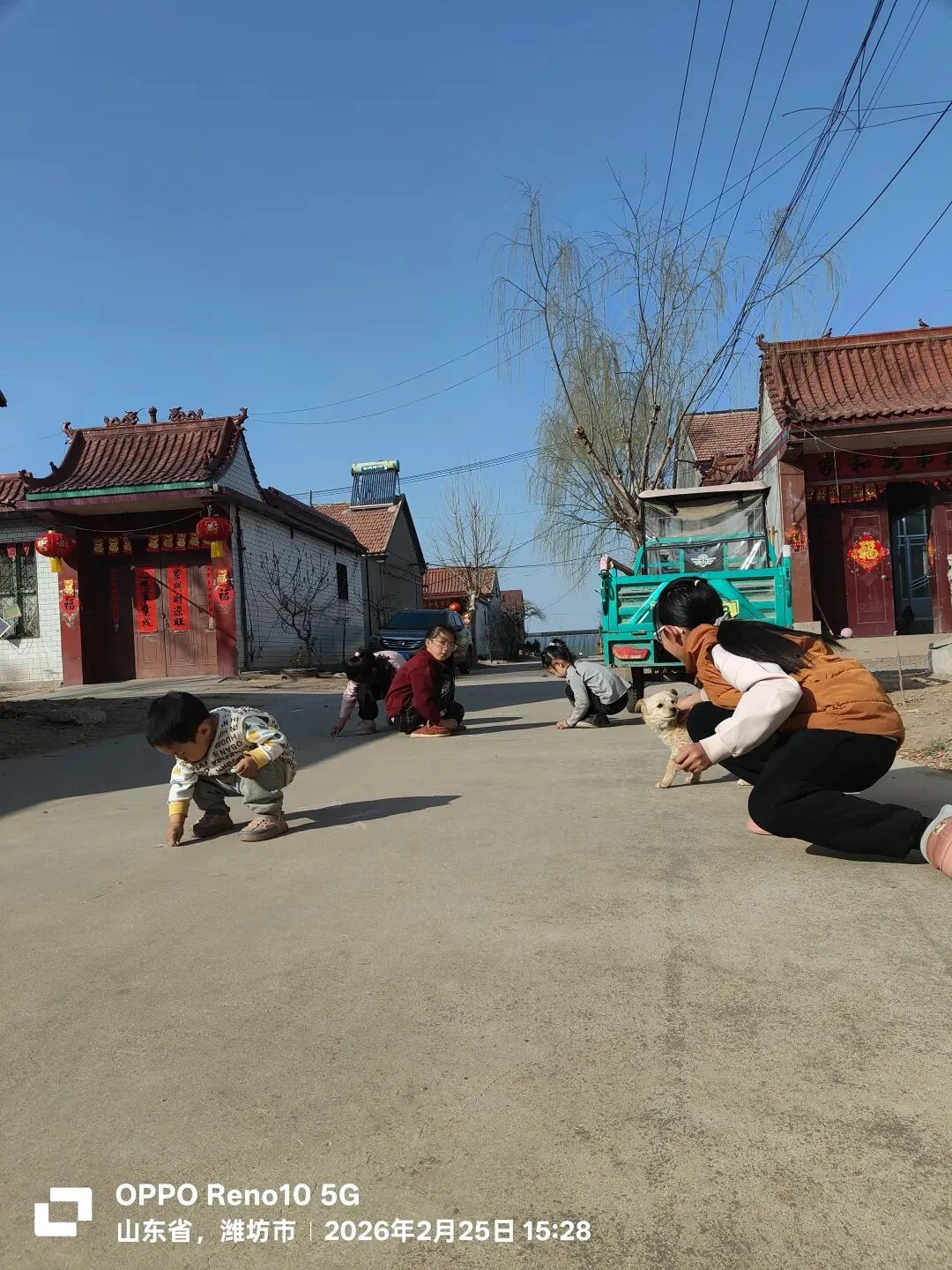 崔一博在家里一直喊着姐姐,姐姐,大门关不住。我只得抱起他去找姐姐。崔一萌正和三个小姐姐玩得热火朝天。