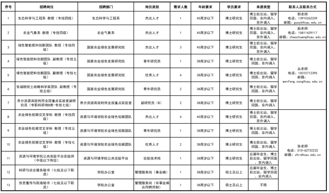 以上各岗位的任职条件、岗位职责等内容请详见中国农业大学人才招聘网站http://cauzhaopin.cau.edu.cn/zp.html#/