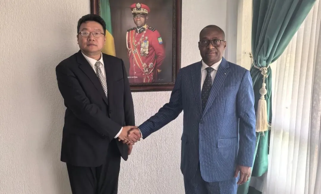 2月25日,周平大使会见加蓬渔业、海洋和蓝色经济部长马桑巴,双方就深化两国渔业合作及海上安全等深入交流。