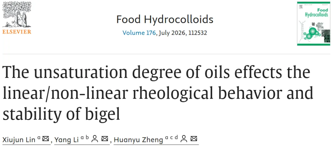 Food Hydrocolloids| 油脂不饱和度对双凝胶线性 / 非线性流变行为及稳定性的影响