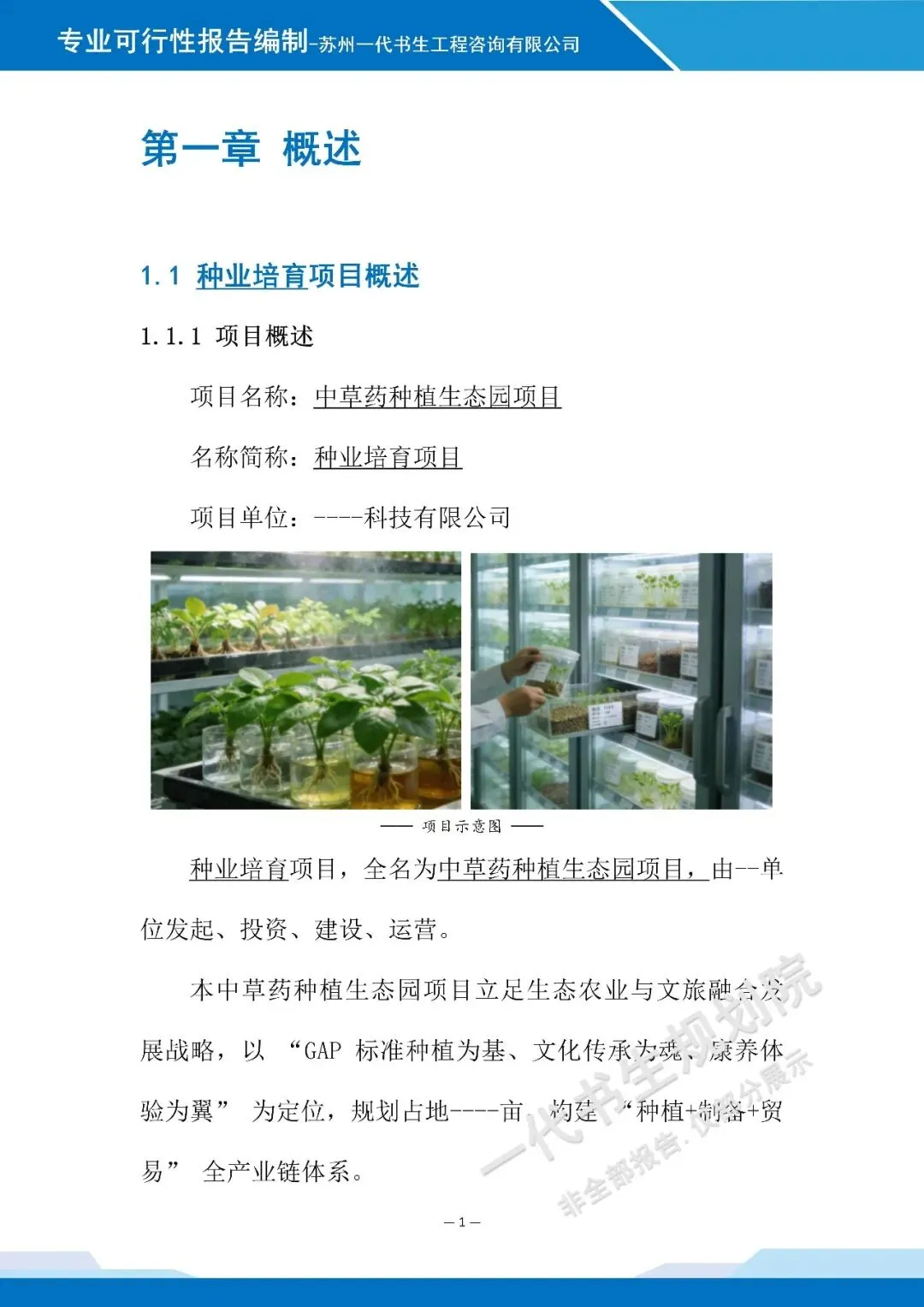 【三】项目可行性报告编制要点说明本项目可行性报告是由苏州一代书生工程咨询有限公司编制,旨在为中药草种业培育项目的投资决策提供科学、可靠的依据。- 其一,精准分子育种技术可行性,重点论证MediPlant-NEPE引导编辑等新型技术适配性,结合道地药材特性,明确活性成分定向提升、珍稀品种脱毒培育方案,凸显技术差异化,破解传统育种周期长、品质不均难题。
