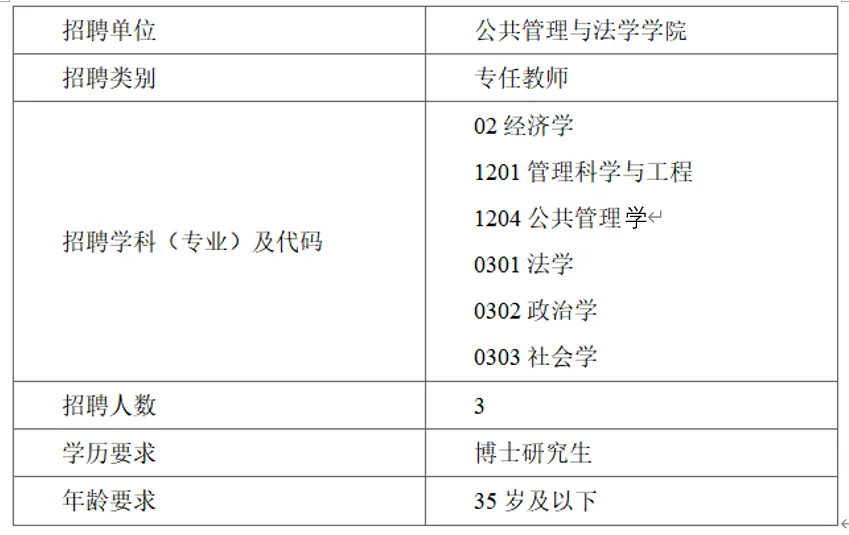 湖南农业大学公共管理与法学学院2025年高层次人才公开招聘岗位计划及要求注:学院对于学术业绩突出、具有较大学术潜力的海内外优秀青年博士,可开辟绿色通道,一事一议。海外优秀博士不受指标限制。具体招聘信息可通过湖南农业大学校园网(https://www.hunau.edu.cn/)和湖南农业大学人才招聘网站(http://zp.hunau.edu.cn)查询。