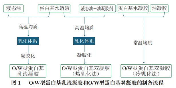 1 O/W型蛋白基乳液凝胶和O/W型蛋白基双凝胶在制备方面的比较