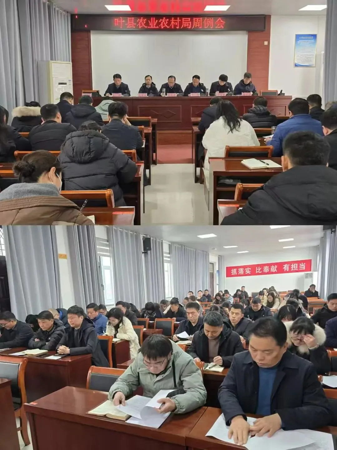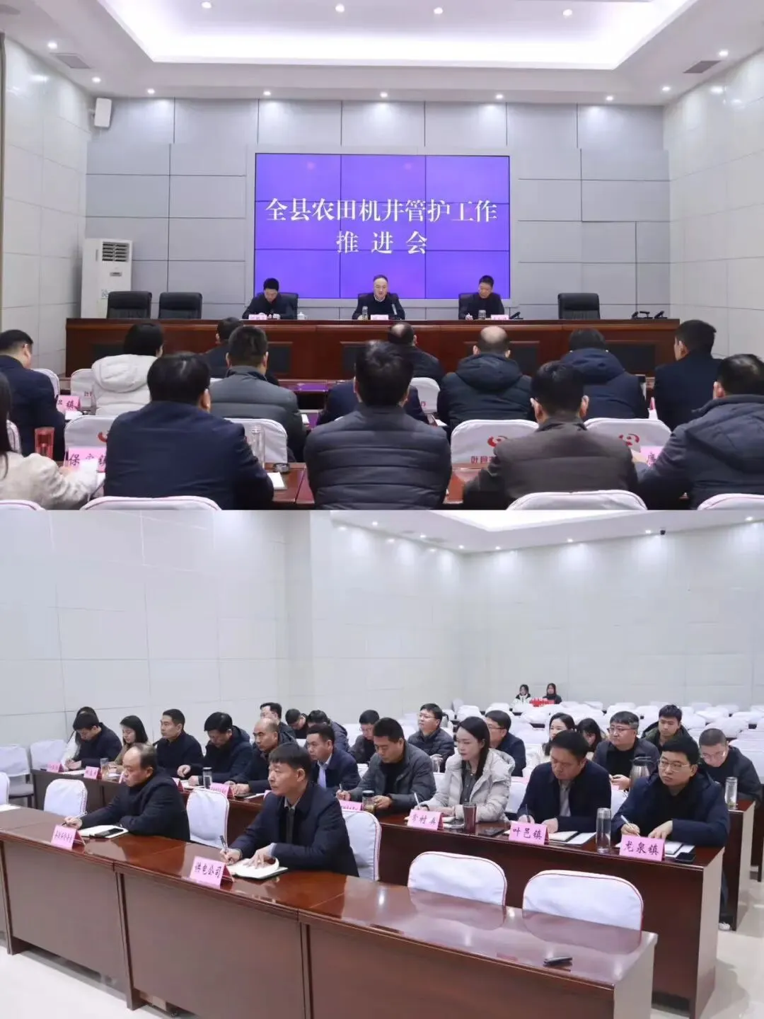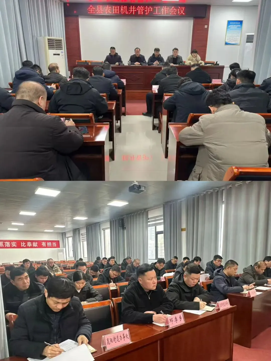 (三)1月30日下午,全县农田机井管护工作会议在县农业农村局五楼会议室召开。县农业农村局党组书记、局长魏进庚,党组成员黄红亚出席会议。会上传达学习了市级机井管护工作会议精神,对机井管护工作再安排再部署再要求,并对“豫农田”机井录入、“百日攻坚”问题机井整改台账建立及乡村机井管护“三本账”建立工作进行详细讲解。18个乡镇(街道)主管副职、农田水利管护站站长,县农业农村局农田建设管理股参加会议。