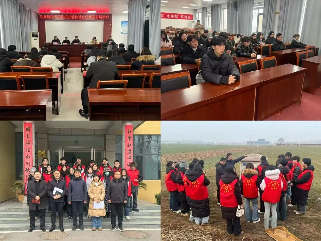 (八)1月27日下午,叶县返乡大学生机井管护社会实践岗前培训会在县农业农村局五楼会议室召开,团县委副书记党帅旗、县农业农村局党组成员黄红亚出席会议。会上,明确了机井管护社会实践活动的目标任务、工作安排和纪律要求等,详细讲解了全省机井管护社会实践相关文件政策、“豫农田”小程序使用操作等。会后,实地到九龙街道西菜园村,深入田间地头、管护一线,现场对机井排查、管护协助、政策宣传等工作进行实践,进一步凝聚共识、压实责任,确保活动有序开展、取得实效。