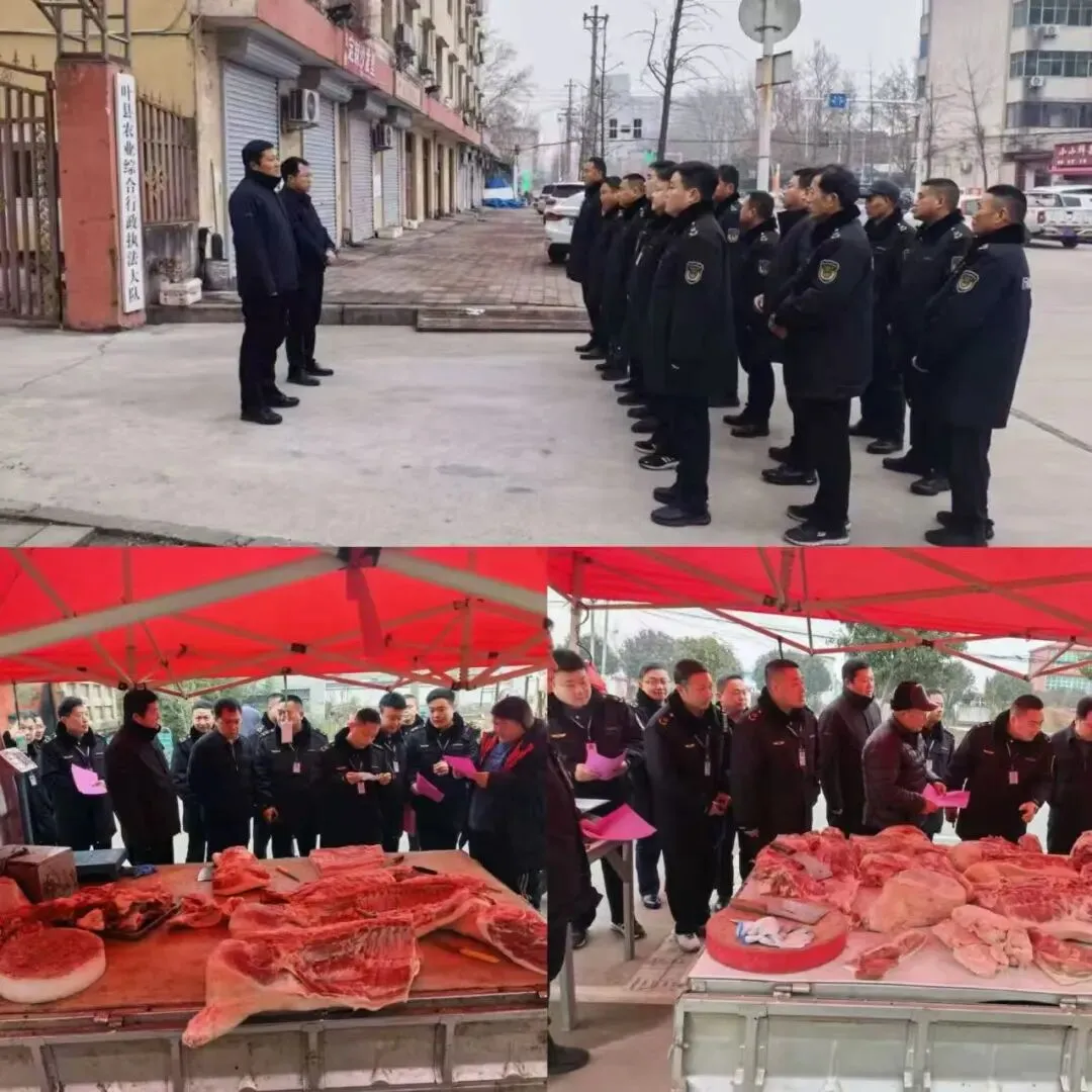 (六)1月29日,县农业农村局副局长杜战辉、农业综合行政执法大队副大队长乔磊带领农业综合行政执法大队分别到九龙街道孟奉店、任店镇、夏李乡、常村镇、保安镇、叶邑镇、辛店镇、龙泉乡、仙台镇、龚店镇等乡镇进行生猪私屠滥宰专项行动宣传工作,详细查看了商户证章等资料,进一步规范全县生猪屠宰秩序,保障猪肉产品质量安全。