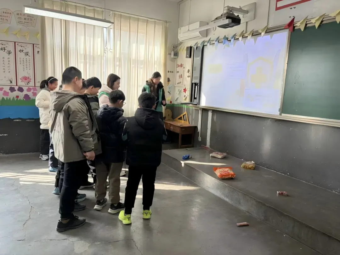 实践团定位“健康翻译官”,摒弃专业术语,聚焦儿童认知设计宣讲内容。宣讲时,团队成员以“辣条为何影响视力”等贴近生活的问题切入,将营养成分表转化为“零食侦探”互动,引导学生观察辣条包装,讲解菠菜护眼功效,用“为眼睛穿防护衣”加深理解;还通过情景演绎阐释挑食危害,以“营养小火车缺零件”让“均衡膳食”理念深入人心。课堂上,同学们积极互动、追问知识,在轻松氛围中筑牢健康认知基础。