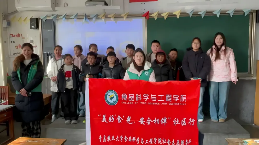 为守护青少年身心健康,推动健康饮食与视力保护知识进校园,构建家校社协同育人体系,2月3日,青岛农业大学食品科学与工程学院“食光合伙人”社会实践团赴临沂育晨希望小学,开展“‘沂’路同行 食安润童心,明眸映晴空”寒假社会实践活动,以知识宣讲、互动问答、趣味游戏等形式,带来沉浸式健康科普体验。