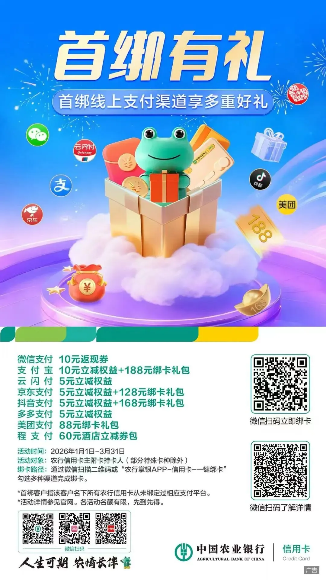 (请通过微信扫描活动二维码,或登陆农行掌银APP-信用卡一键绑卡完成绑卡)