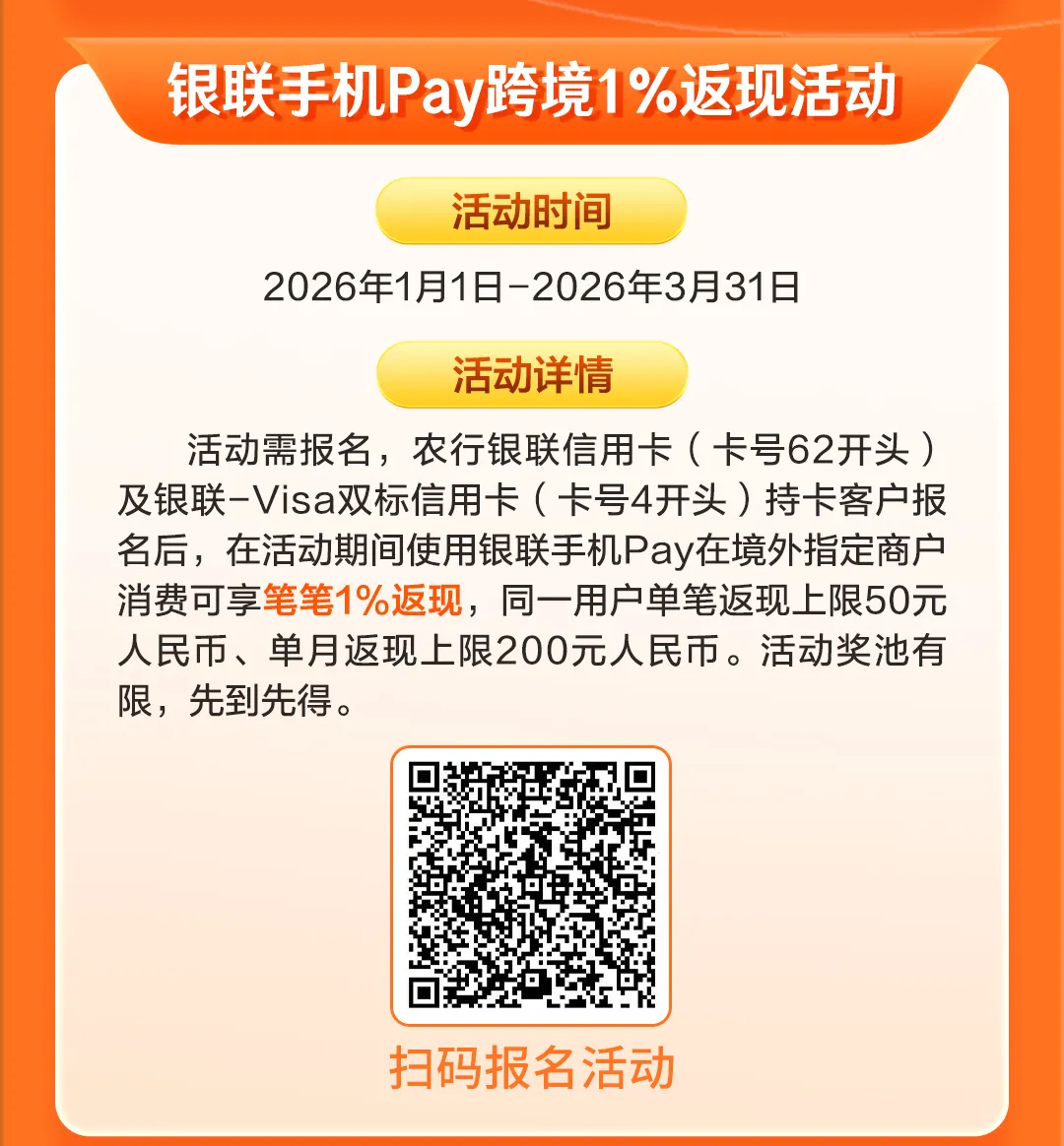 农行信用卡 | 首绑有礼!活动继续!