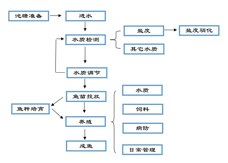 盐度管理:鱼苗期(3~5cm)盐度控制在10‰—12‰,成鱼期(5cm以上)提升至15‰—20‰,盐度波动每日不超过3‰(避免应激);