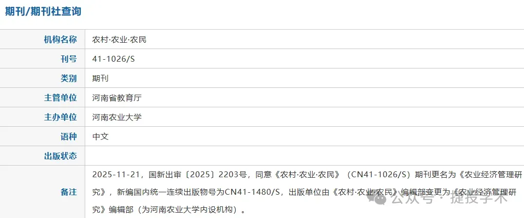 《农业经济管理研究》是由河南省教育厅主管、河南农业大学主办的专业类学术期刊。坚持“与学者共成长、与学科共进步、与学术共繁荣、与学校共发展”的办刊理念,致力于发表本领域的高质量研究成果,全面服务国家乡村振兴战略与农业农村现代化。内容包含但不限于以下研究:农业经济管理理论创新与学科发展;农业生产经营组织形式与制度安排;农村要素市场配置机制研究;农业产业链供应链管理理论;乡村振兴战略实施机制与路径;农业农村现代化进程与评价;农村改革与发展的制度创新;农业农村政策评估与优化;数字经济与智慧农业发展;农业绿色低碳转型路径;农村共同富裕实现机制;农业农村现代化监测评价体系;国际农业经济管理经验借鉴。