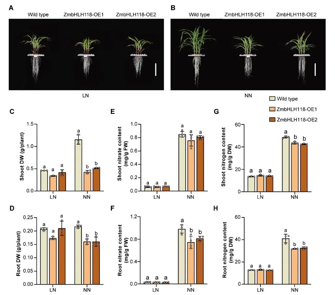 图1 ZmbHLH118负调控玉米生长及氮水平